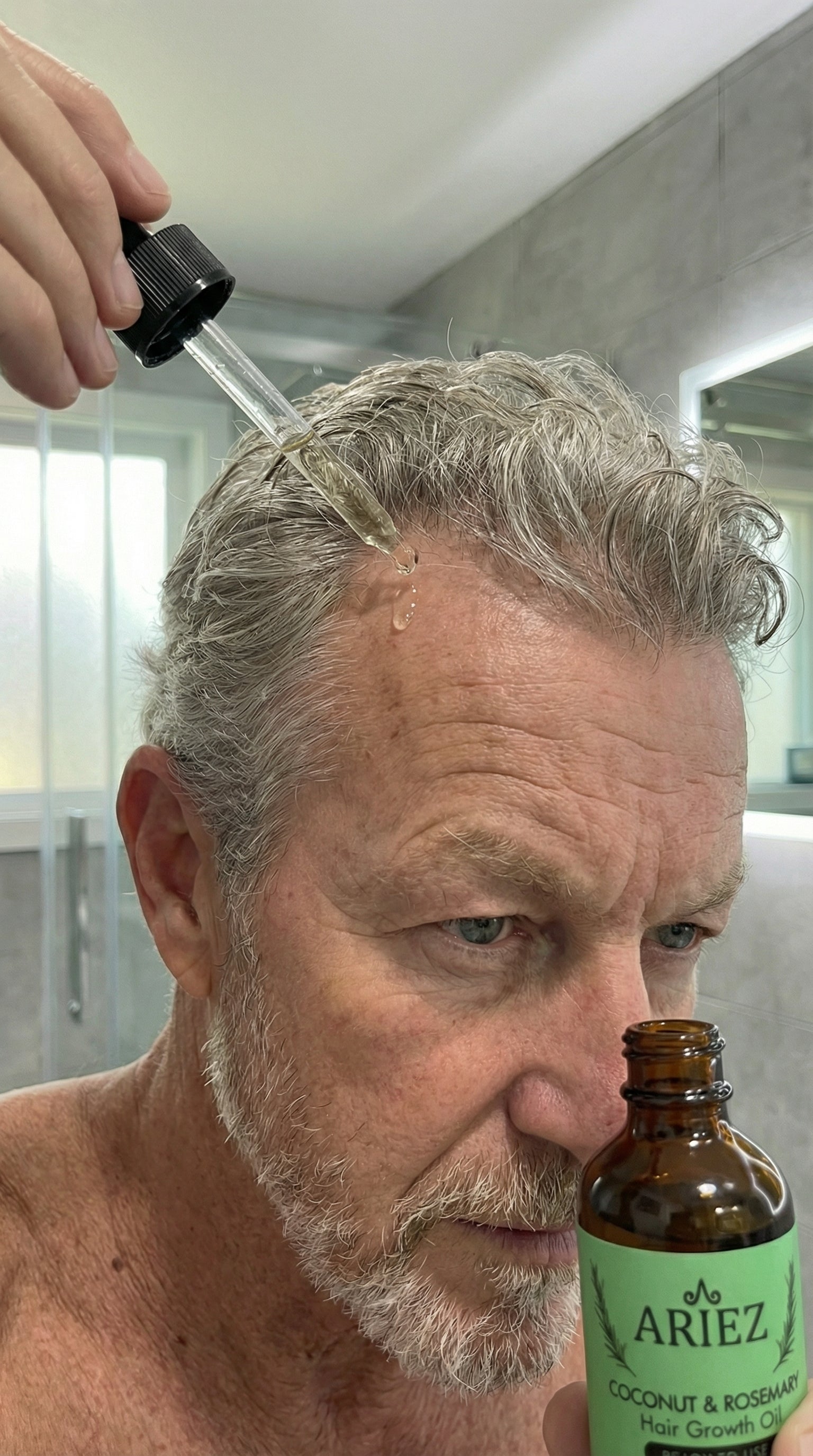 Apply the Rosemary Growth Serum to nourish follicles and promote healthy hair growth.